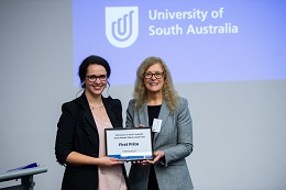 The second placegetter was Jessica Porter, School of Commerce, who is investigating policy measures to boost the supply of affordable housing. Third place went to Darren Taljaard, School of Art, Architecture, and Design, who is using design principles to improve digital reading materials for adults with dyslexia.