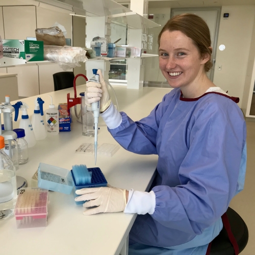 PhD candidate Ashleigh Hull and Professor in Medical Radiation Eva Bezak are researching a cancer cell receptor called the mucin 1 (MUC1-CE), which is commonly found in pancreatic cancer cells, but largely absent from healthy pancreas tissue, meaning it may serve as a “biological beacon” for targeted treatment.