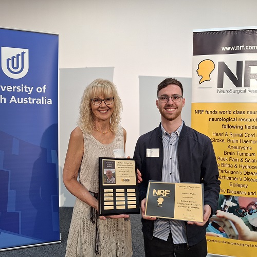The Richard Buttery and NRF Glioblastoma Research Vacation Scholarship was among those presented last week. This enabled recipient Samuel Wallis to explore a potential career in glioblastoma research through an eight-week UniSA placement – 10 years after Richard’s passing.