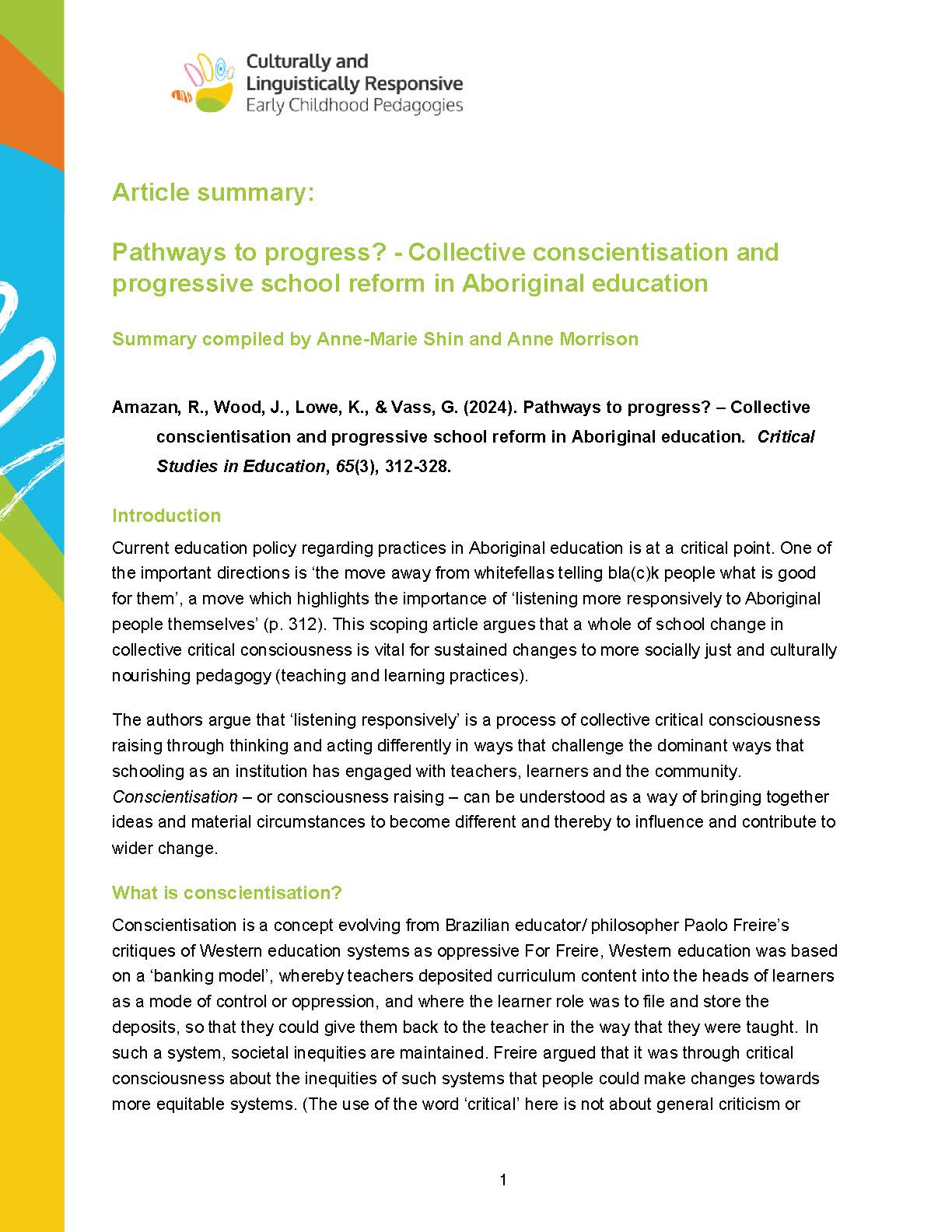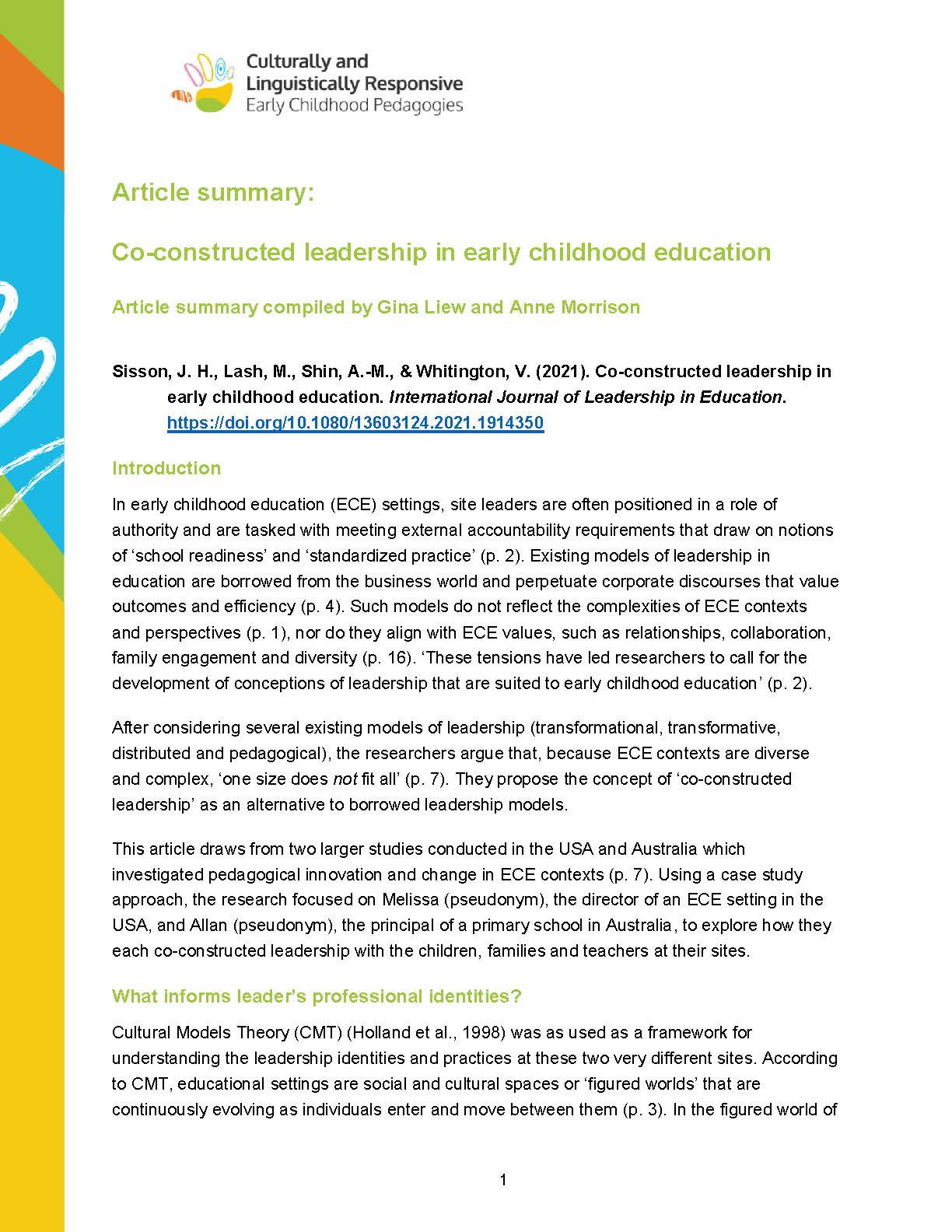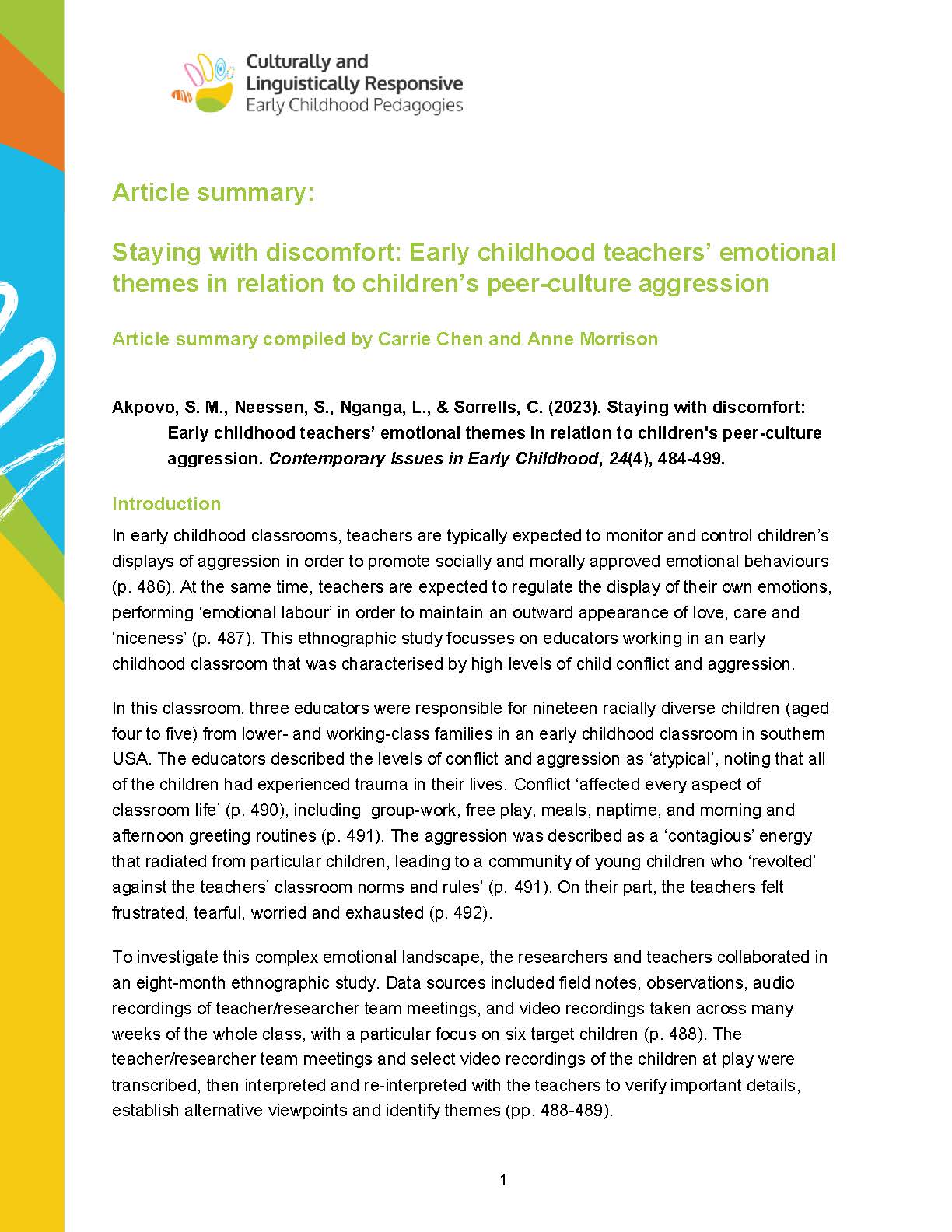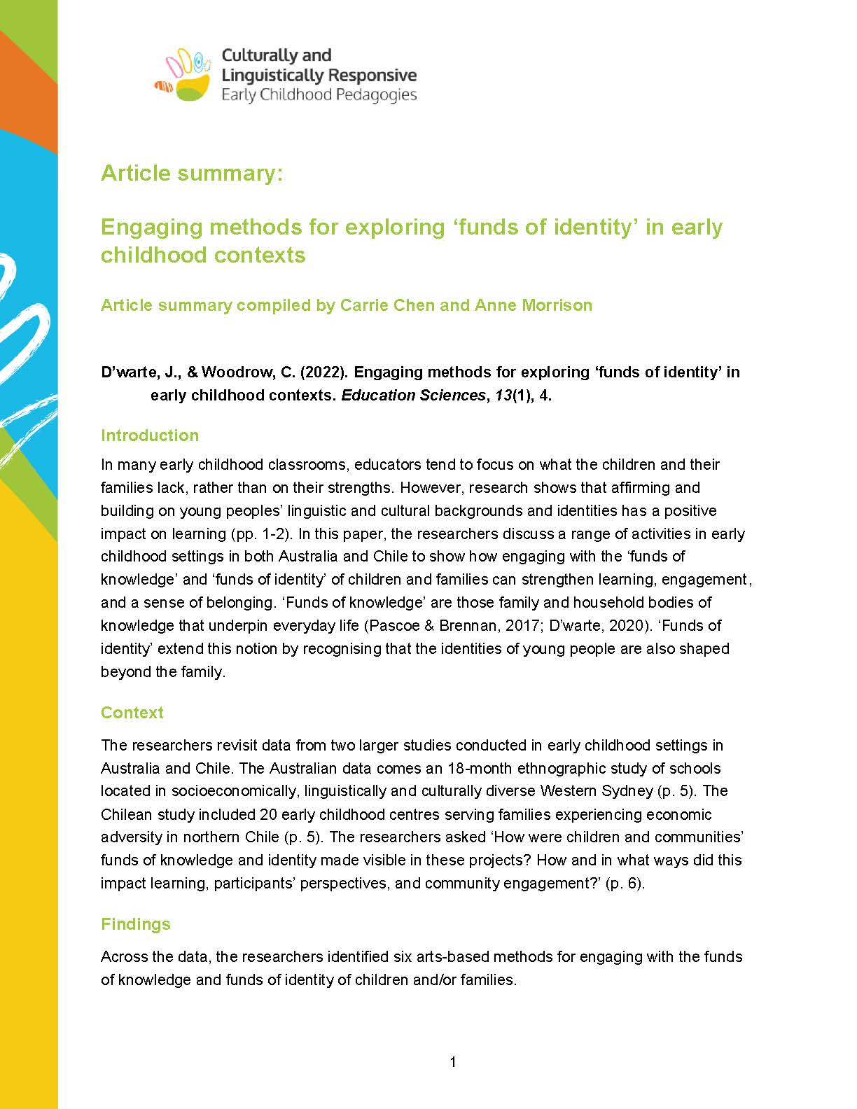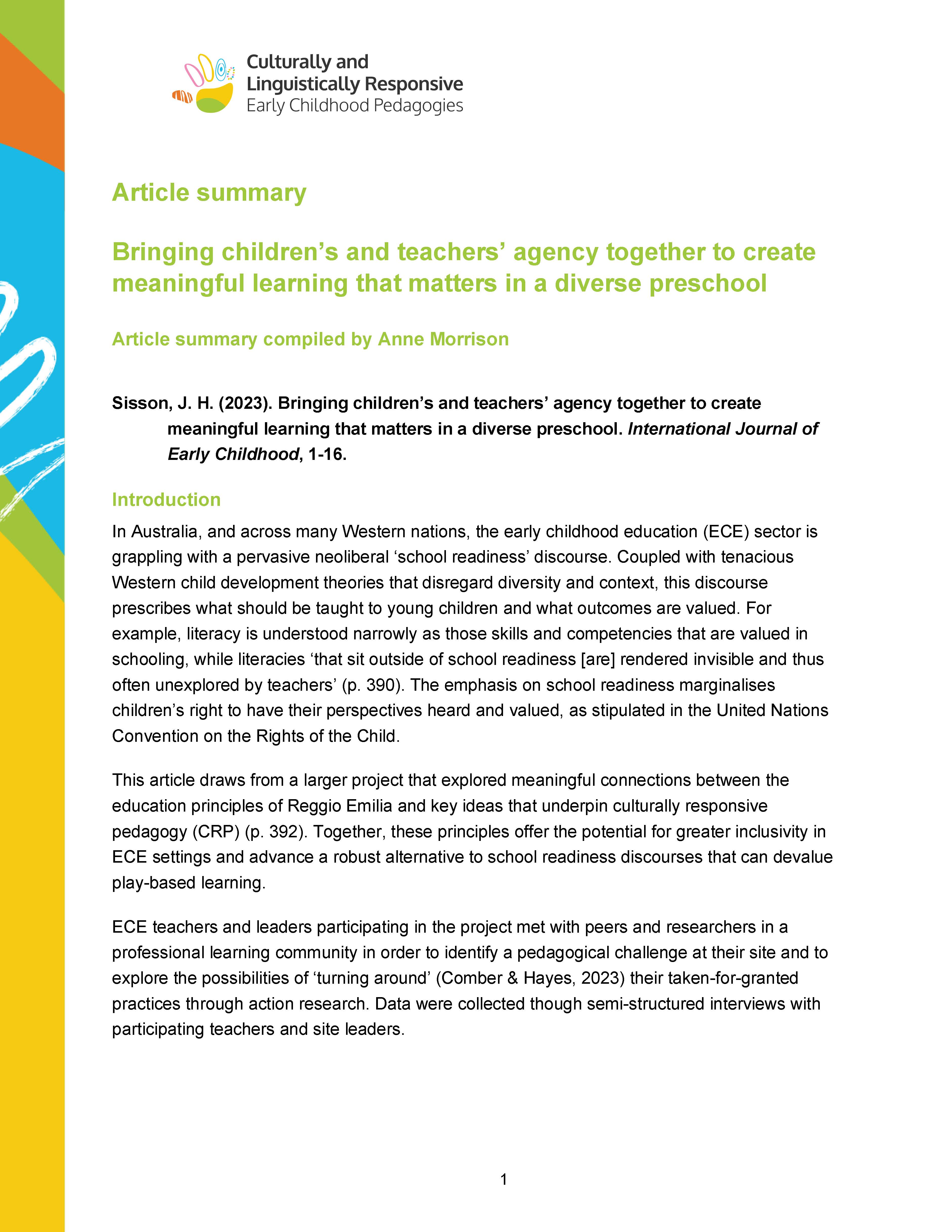 If you are keen to read literature on Culturally and Linguistically Responsive Pedagogies in Early Childhood Education, but are short of time, these article summarise provide key relevant literature.