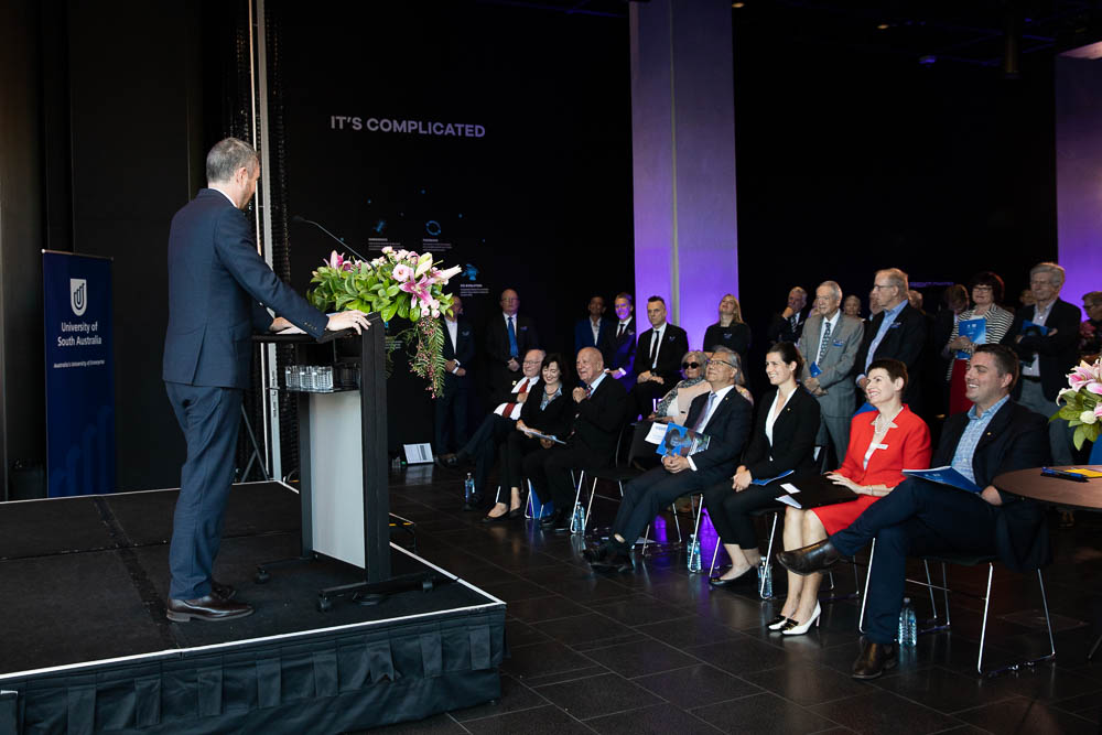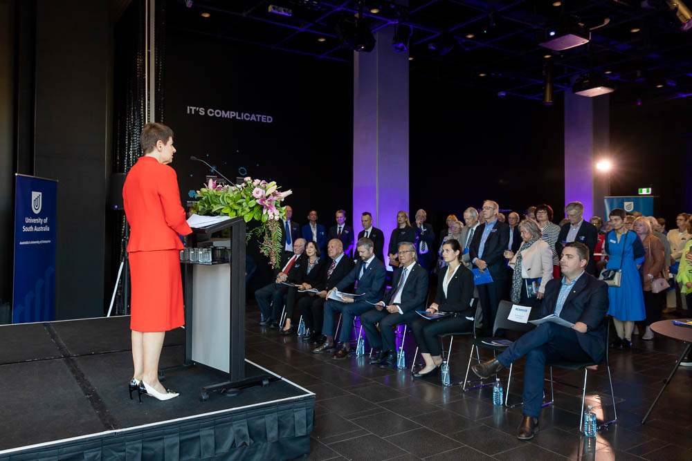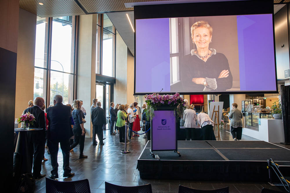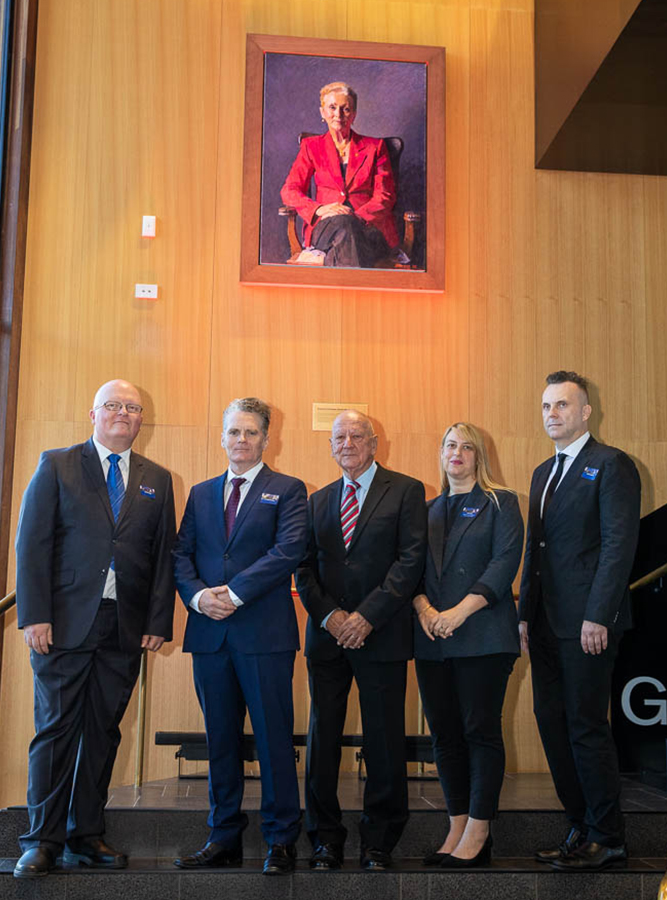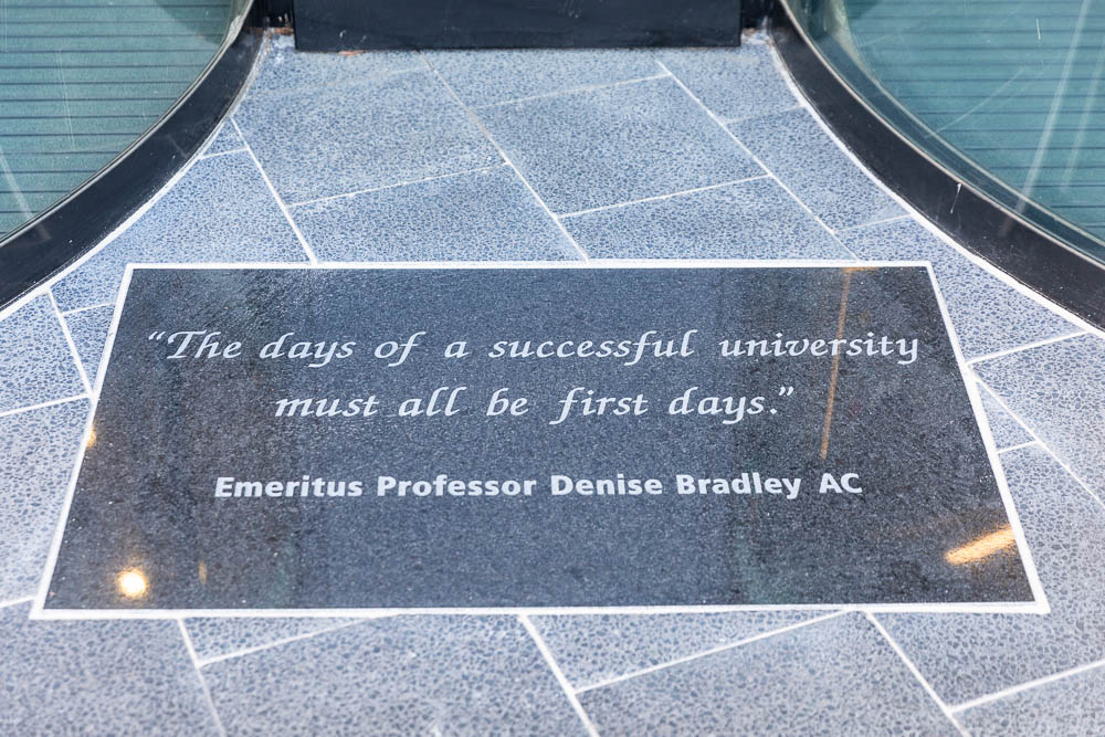 To mark the occasion, 70 people including Denise’s family members and current and former UniSA colleagues gathered to unveil Professor Bradley’s portrait in the building foyer. An engraving at the front of the building was also unveiled with a quote drawn from Denise’s farewell address to the UniSA community, where she remarked that, “The days of a successful university must all be first days”.  The event was attended by the Governor of South Australia, His Excellency the Honorable Hieu Van Le, Mr Matt Cowdrey OAM, MP representing the State Government, Dr Susan Close representing the Opposition, former UniSA Vice Chancellor Professor Peter Hoj, and former Chancellor Ian Gould. Ms Maggie Klingberg also attended representing her husband, the former Chancellor David Klingberg AO.